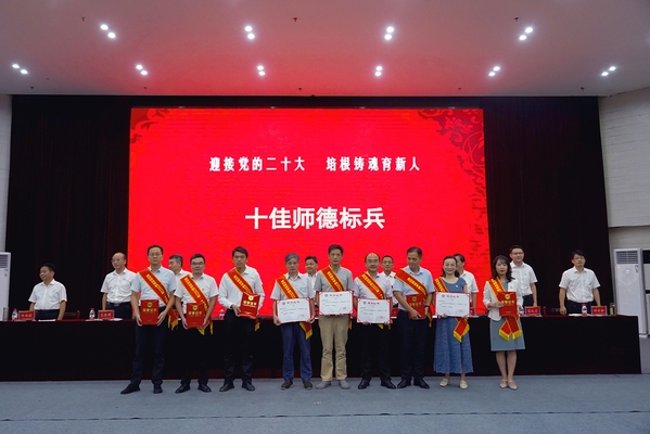 校党委书记陈向军发表讲话。他代表学校党委、行政,向辛苦耕耘在教学科研、服务管理岗位上的全体教职工致以节日的问候,向受到表彰的先进集体和个人表示热烈的祝贺,向从教满30周年的教职工和离退休教职工为学校改革发展所做出的贡献表示衷心的感谢,向新加入黄师大家庭的教师们表示诚挚的欢迎。陈向军指出,今年是党的二十大召开之年,是向第二个百年奋斗目标进军新征程的重要一年,为今年的教师节赋予了特殊意义。教育部将今年教师节的主题确定为“迎接党的二十大,培根铸魂育新人”,这个主题内涵丰富,既体现了广大教师承载的光荣历史使命,又体现了党和人民对教师的时代重托。