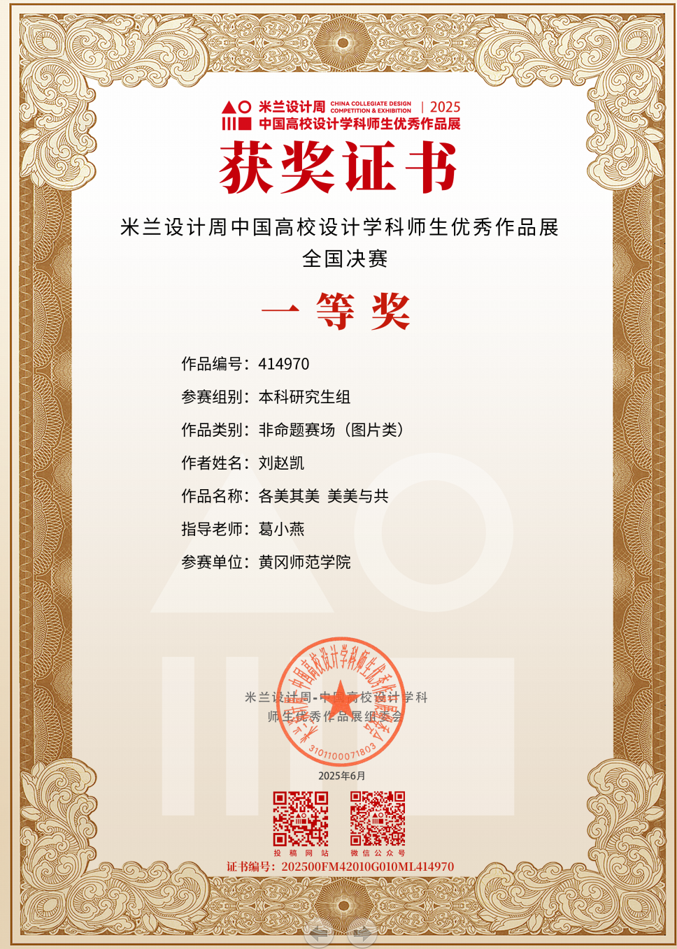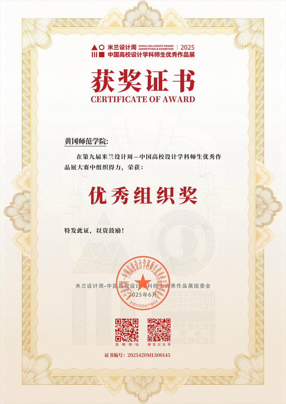 本网讯 7月22日-26日,第九届米兰设计周-中国高校设计学科师生优秀作品展颁奖典礼暨“人工智能赋能艺术设计教育”教学创新论坛等系列活动在成都举行。我校美术学院选送的作品荣获国家级奖项29项,其中一等奖3项、二等奖12项、三等奖14项。学校荣获优秀组织奖。